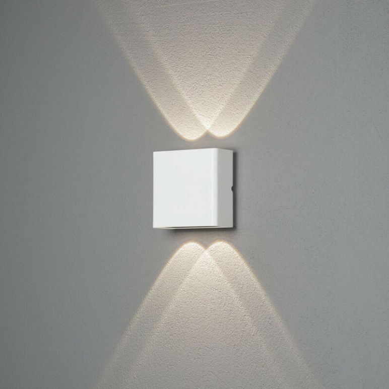 Konstsmide Chieri Outdoor Moderne Up Down Wandleuchte Weiß 2x 2 LED, IP54 | Ausführung: Weiß | Material: Aluminium | IP-Schutzart: IP54 | Höhe: 11cm | Breite: 11cm | Tiefe: 6cm | Lampentyp: Integrierte LED | Leuchtmittel enthalten: Ja | Kelvin: 3000K | Lumen: 400lm