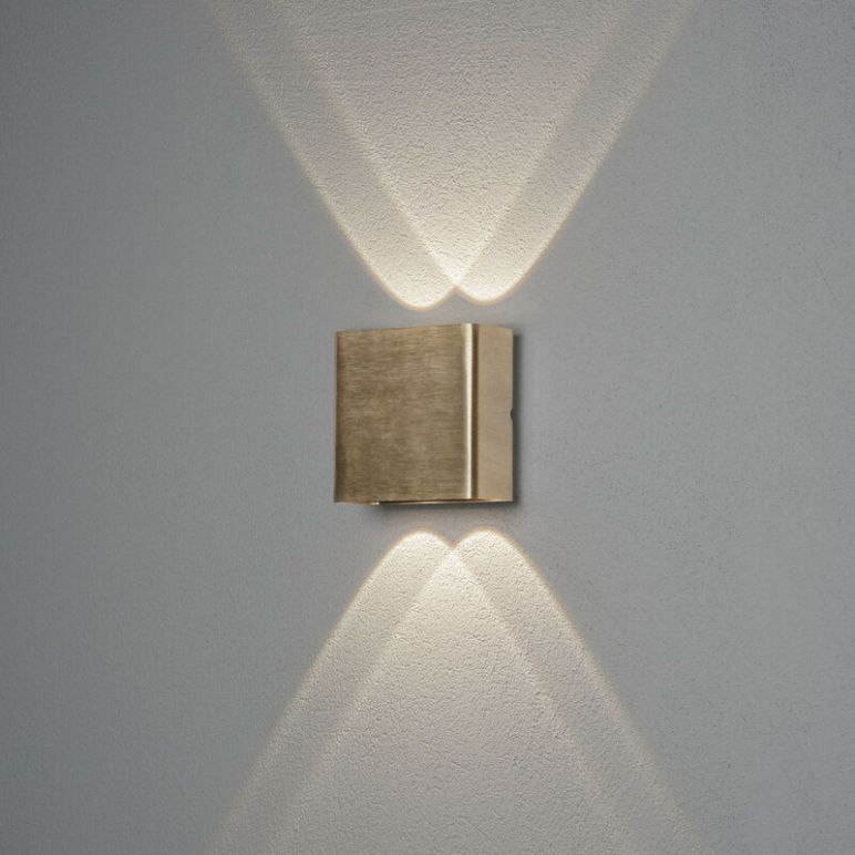 Konstsmide Chieri Outdoor Modern Up Down Wall 2x 2 LED Messing, IP54 | Ausführung: Messing | Material: Messing | IP-Schutzart: IP54 | Höhe: 11cm | Breite: 11cm | Tiefe: 6cm | Lampentyp: Integrierte LED | Leuchtmittel enthalten: Ja | Kelvin: 3000K | Lumen: 400lm