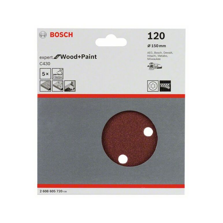 Bosch - 5x Schleifblatt C430 Expert for Wood 6 Löcher Klett 150 mm K120 - 2608605720