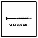 Die Spanplattenschrauben eignen sich für die Verwendung in tragenden Holzkonstruktionen, zur Verbindung von Teilen aus Vollholz, Brettschichtholz, Holzwerkstoffplatten, etc., sowie für Verbindungen von Metallteilen auf Holz. Die Schrauben sorgen für kraftvolle Verbindungen und ein festes Aneinanderziehen in allen Hölzern aber auch zum beschädigungsfreien befestigen von Metallteilen auf Holz. Die Spanplattenschraube Power-Fast II ist eine Schraube mit geprüften Lasten im fischer Dübel (z. B. DUOPOWER und UX). Sie bietet eine flexible Anwendung im Dübel mit hohen Tragfähigkeiten. Fischer ist mit diesen Schrauben die ideale Lösung für einen sauberen Oberflächenabschluss mit weniger Beschädigung des Metalls gelungen. Die Schraubenspitze mit den drei Rippen sorgt für ein schnelles Anbissverhalten und Vorfräsen. Für ein schnelles Ansetzen und ein reduziertes Spaltverhalten. Die Unterkopfgeometrie mit optimiertem Doppelkonus und Frästaschen sorgen für weniger aufgerissene Holzoberflächen und weniger Beschädigungen auf Metallbauteilen. Für eine bessere Optik und Haptik der Oberflächen. Die erhöhte Gewindesteigung reduziert die Einschraubzeit deutlich und ermöglicht eine schnelle Montage. Die Schaftfräsrippen in Kombination mit der Kernfräsergeometrie reduzieren den Einschraubwiderstand spürbar. So können mit einer längeren Akkulaufzeit und weniger Kraftaufwand mehr Schrauben eingeschraubt werden. Die neuartige Kernfräsergeometrie ermöglicht ein präzises Fräsen und optimales Herausarbeiten des Holzmehls. Damit sind geringe Rand- und Achsabstände möglich. Die galvanische Verzinkung, blau passiviert, enthält keine Chrom VI Anteile und ist damit sehr umweltverträglich. Die neue Power-Fast II mit ihrer einzigartigen Schraubengeometrie vereint höchstes technisches Know-How mit ausgezeichnetem Design. Power Fast II ist die Spanplattenschraube für eine schnelle und flexible Verarbeitung.