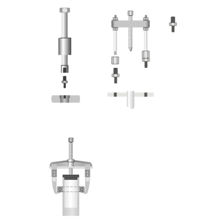 Zum Abziehen von z. B. Lager, Zahnrädern eingesetzt, die auf Hohlwellen oder in Gehäusen gelagert sind