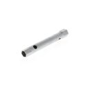 SOLIDES MATERIAL: Der Doppelsteckschlüssel wurde aus hochwertigem Stahl gefertigt und verchromt. Er verfügt über je eine Bohrung für die Drehstifte 26 D und 26 RS (separat erhältlich).