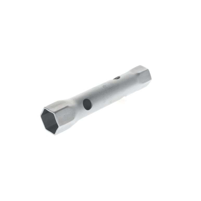 SOLIDES MATERIAL: Der Doppelsteckschlüssel wurde aus hochwertigem Stahl gefertigt und verchromt. Er verfügt über je eine Bohrung für die Drehstifte 26 D und 26 RS (separat erhältlich).