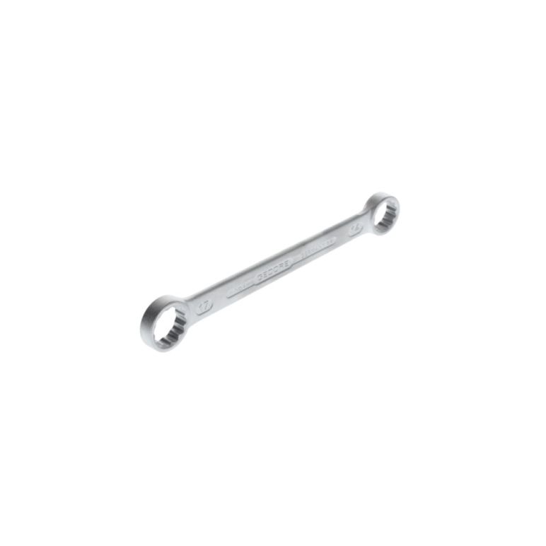 LIEFERUMFANG: 1 x GEDORE Doppelringschlüssel gerade, Länge: 169 mm, Gewicht: 77 g, Artikelnummer: 4 14X17