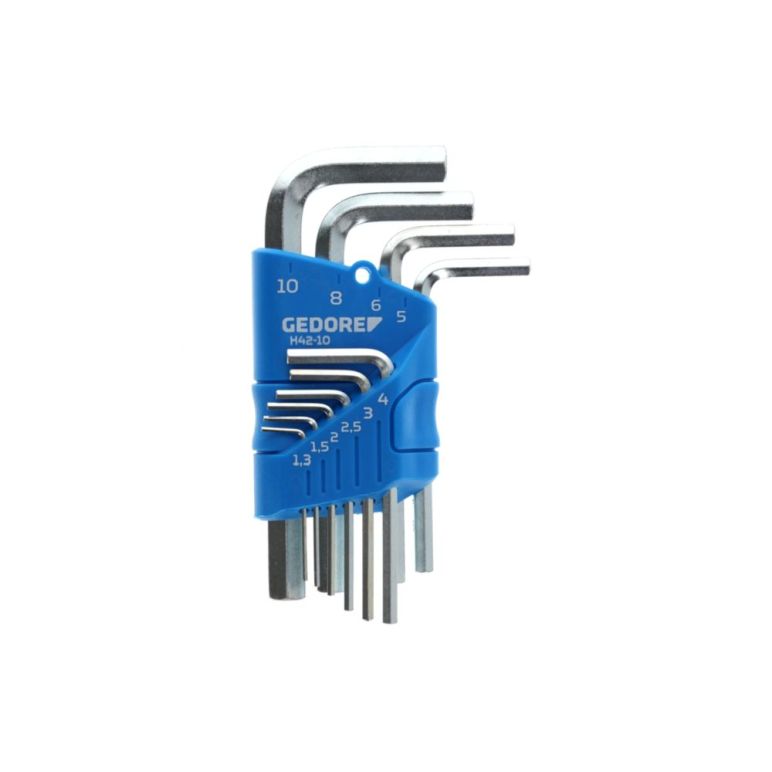 LIEFERUMFANG: 1 x GEDORE Winkelschraubendreher-Satz im Halter, 10 teilig 1,3-10 mm, Gewicht: 259 g, Artikelnummer: H 42-10