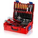 robuste Box aus schlag- und stoßfestem ABS-Kunststoff. Bestückt mit 13 KNIPEX-Werkzeugen, insgesamt 52 Markenwerkzeugen, teilweise VDE-geprüft nach DIN EN 60900. Max. Zuladung: 25 kg. Spritzwassergeschützt. Mehrere Boxen können zuverläßig miteinander verbunden werden. Flexible Innenaufteilung. Tragegriff kann platzsparend in einer Vertiefung im Deckel versenkt werden. Ergonomisch geformte Griffe und zusätzliche seitliche Griffschalen für flexibles und komfortables Handling. Mit zweiteiliger Werkzeugtafel aus schmutzabweisenden PP-Hohlkammerplatten. Werkzeugtafeln sind über Klett miteinander verbunden. Deckelteil mit 10 Taschen und 10 elastischen Schlaufen. Bodenteil oben mit 7 Taschen und Lasche zum Aufhängen der Werkzeugtafel; dient auch zum Anheben und Aufstellen der KNIPEX L-BOXX®. Bodenteil unten mit 7 Taschen und 7 elastischen Schlaufen. Abmessungen, außen (B x H x T): 442 x 357 x 151 mm Abmessungen, innen (B x H x T): 375 x 107 x 311 mm.