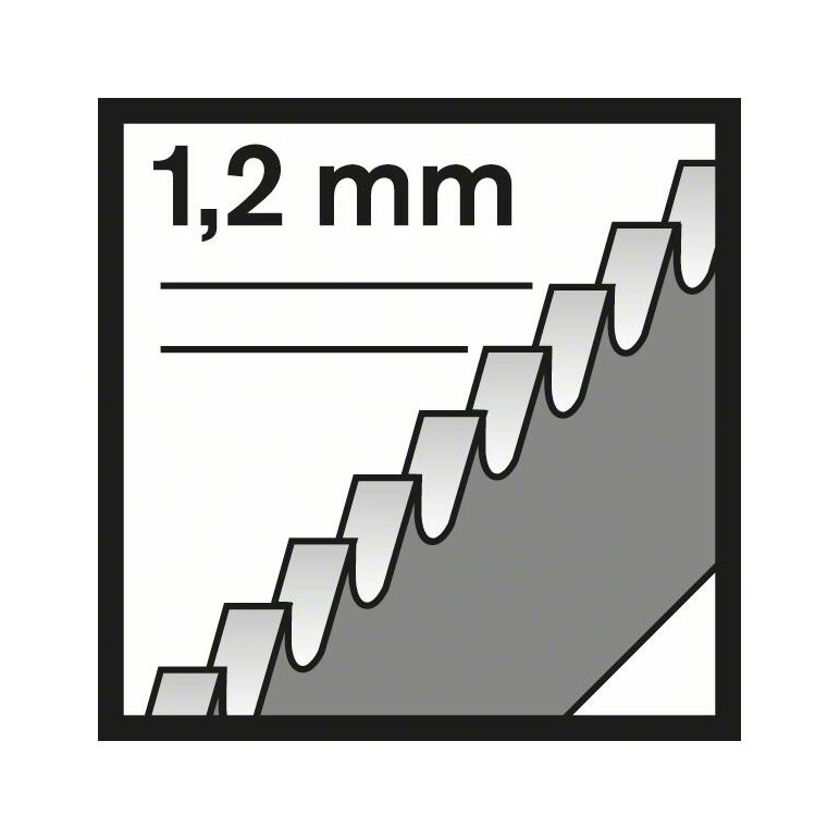 Das T 318 A Basic for Metal Stichsägeblatt macht Schnitte in Metall. Die gefrästen, gewellten Zähne sind ideal für grundlegende Schnitte ohne besondere Anforderungen. Das Blatt aus hochwertigem gehärtetem Hochgeschwindigkeitsstahl ist zum Schneiden von Rohren und geschlossenen Profilen aus Stahl (Standard-Stärke), Aluminium und Nichteisenmetallen geeignet. Die sehr feine Zahnteilung des Blatts (1,2 mm) schneidet dünnwandige Metallrohre und -profile mit 1-3 mm Wanddicke, während die große Länge (132 mm) Rohre und Profile mit einem Durchmesser von bis zu 65 mm schneidet. Für den Gebrauch mit Stichsägen mit T-Schaft-Aufnahme. Für den Gebrauch mit Stichsägen mit T-Schaft-Aufnahme. Werkstoff: HSS, Zahnausführung: gewellt, gefräst, Gesamtlänge [mm]: 132, Zahnteilung [mm]: 1,2, Einsatzbereiche: dünne Bleche (1-3 mm), Rohre + Profile , inkl. Alu (ø <65 mm), Typ: T 318 A.