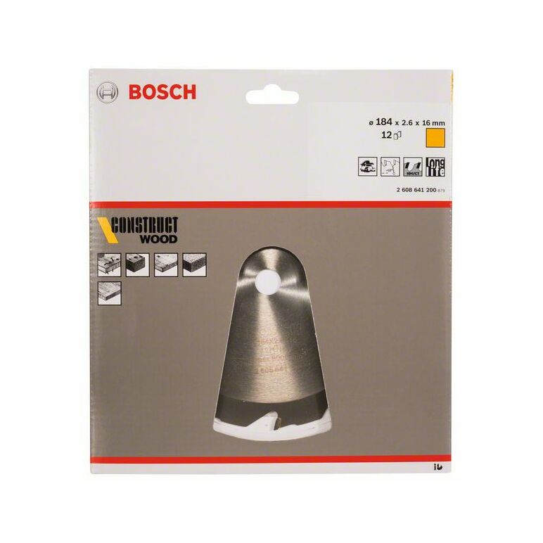 Bosch Kreissägeblatt Construct Wood, 184 x 16 x 2,6 mm, 12 (2 608 641 200)