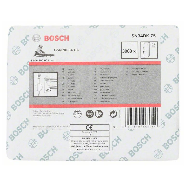 Bosch Accessories 2608200002 Streifennägel SN34DK Produktabmessung, Länge 75mm 3000St.