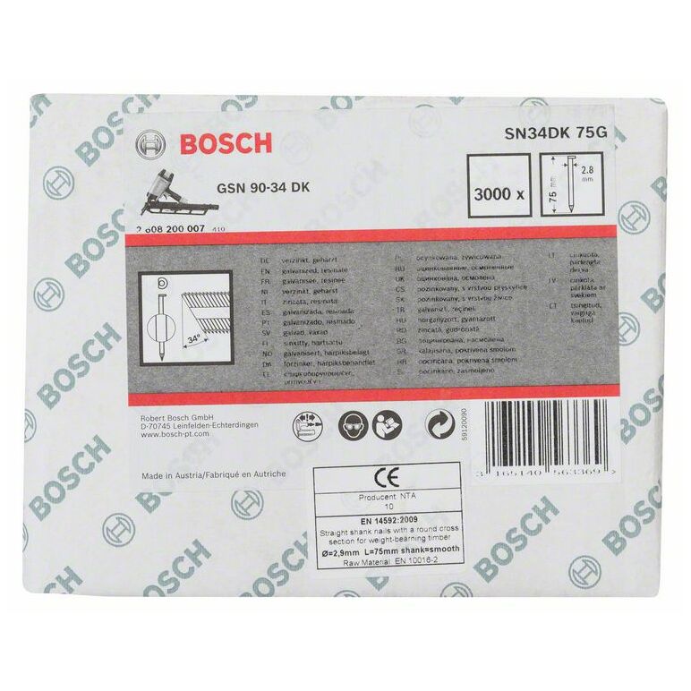 Bosch Accessories 2608200007 Streifennägel SN34DK Produktabmessung, Länge 75mm 3000St.