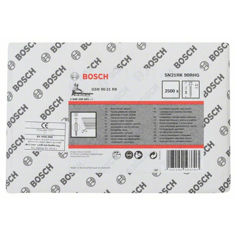 Bosch Accessories 2608200041 Rundkopf-Streifennägel SN21RK Produktabmessung, Länge 90mm 2500St.
