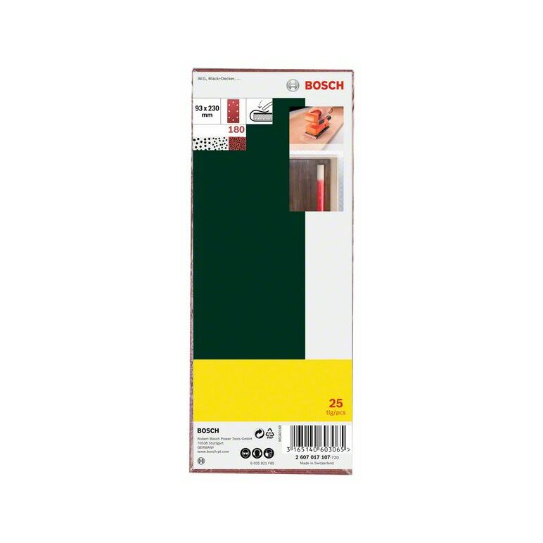 Bosch Schleifblatt-Set für Schwingschleifer, 25-teilig, 8 Löcher, 93 x 230 mm, 180 (2 607 017 107)