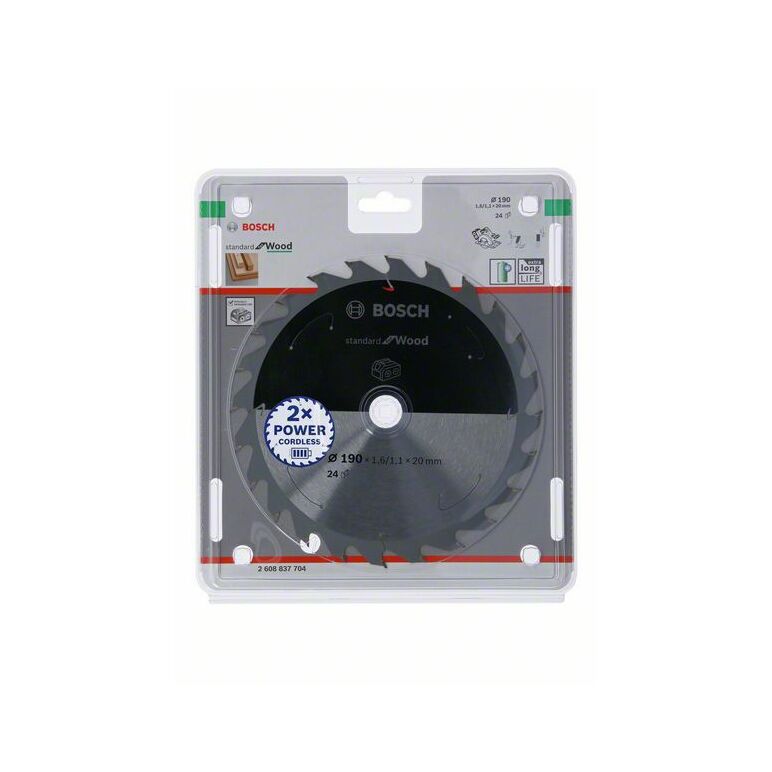 Bosch Kreissägeblatt Standard for Wood für Akkusägen 190x1.6/1.1x20, 24 Zähne