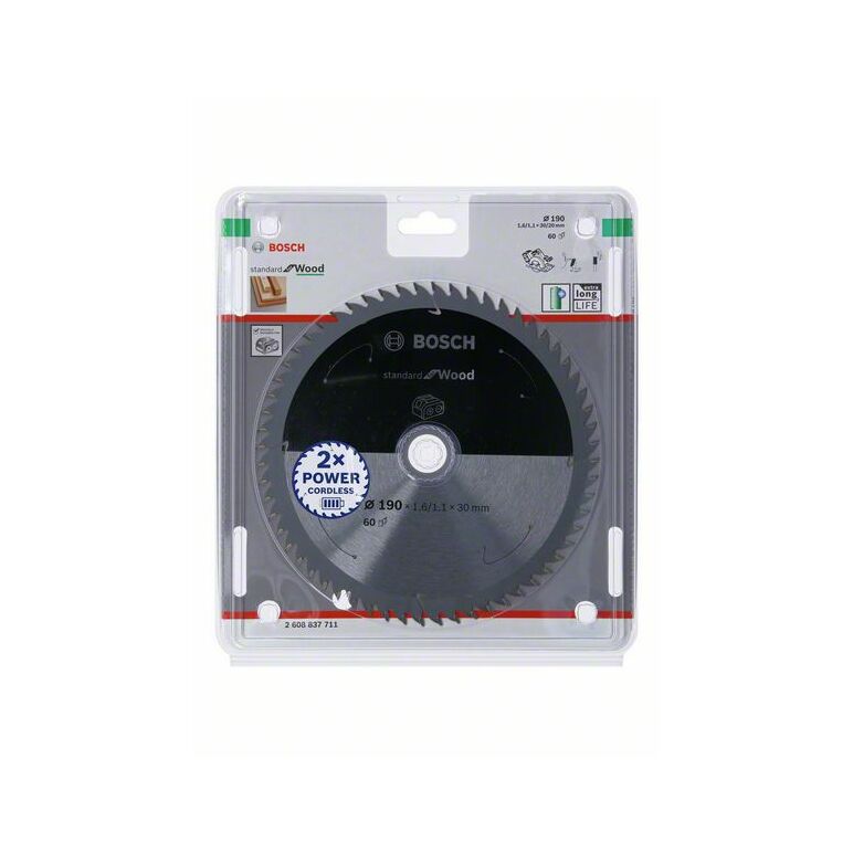 Bosch - Akku-Kreissägeblatt Standard for Wood, 190 x 1,6/1,1 x 30, 60 Zähne