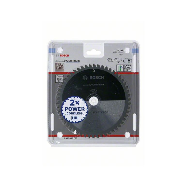 Bosch - Kreissägeblätter für Akkusägen Standard for Aluminium, Maschinentyp: Akku-Tauch- und Handkreissägen, Ausführung: 165x1,8/1,3x20 Z54,