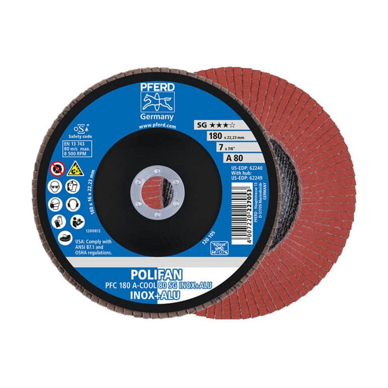 PFERD 67758185PFC 180 A-COOL 80 SG INOX+ALU Fächerschleifscheibe Durchmesser 180mm Bohrungs-Ø 22.2