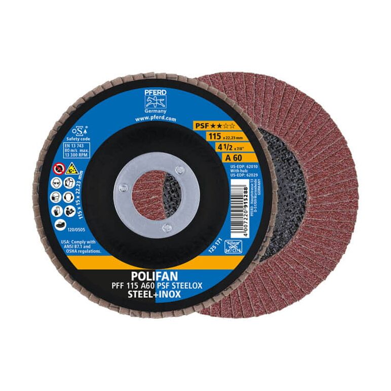 PFERD 67648115PFF 115A 80 PSF STEELOX Fächerschleifscheibe Durchmesser 115mm Bohrungs-Ø 22.23mm Ed