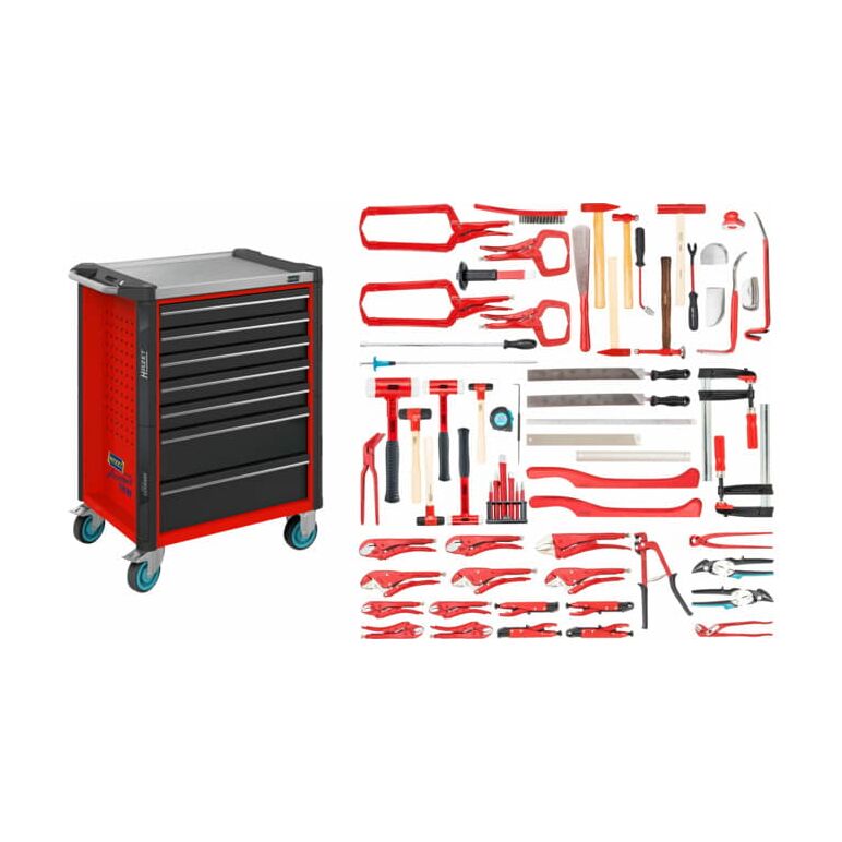 - Werkstattwagen 179 N X-7-RAL 3020: 5 flache und 2 hohe Schubladen