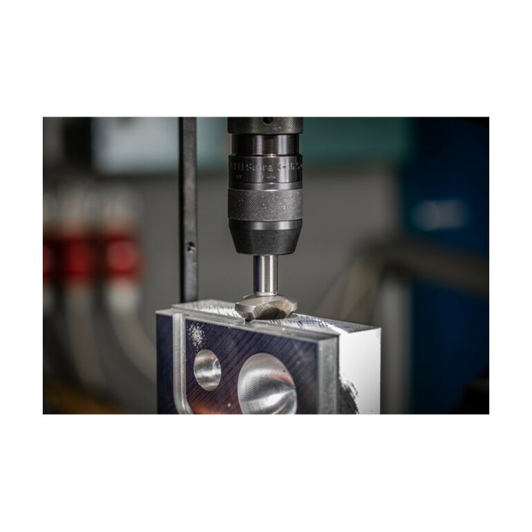 • Die Sets enthalten Hochleistungssenkwerkzeuge mit einem Senkwinkel von 90° zum Versenken von 90°-Schrauben für alle gängigen Werkstoffe wie Stahl, Stahlguss und NE-Metalle