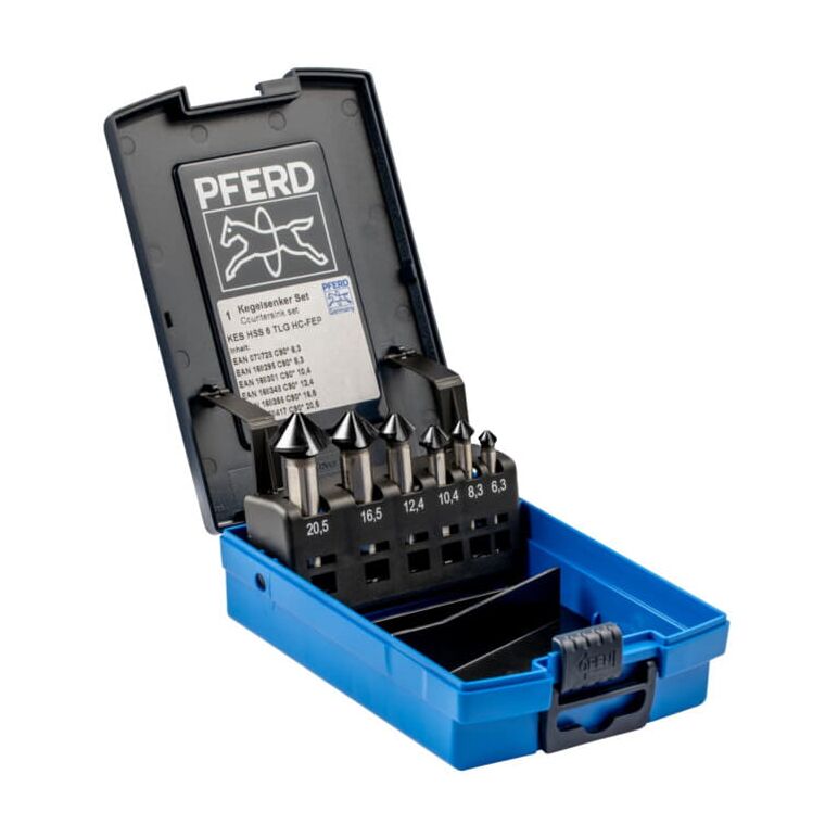 - Die Sets enthalten Hochleistungssenkwerkzeuge mit einem Senkwinkel von 90° zum Versenken von 90°-Schrauben für besonders zähe und harte Werkstoffe wie legierter und hochfester Stahl und Edelstahl (INOX)