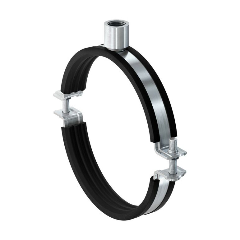 Die fischer Massivrohrschelle FRSM 3/8" für Nenngröße 3/8" mit Schalldämmeinlage zum Befestigen von mittleren bis schweren Rohrleitungen mit Gewindestangen oder Stockschrauben. Die Zweischraubigkeit ermöglicht die optimierte Anpassung auf den Rohraußendurchmesser. Anschlussmutter mit Zoll-Gewinde für eine Rohrbefestigung mit höherer Biegefestigkeit. Rohrschellenschrauben mit Verlustsicherung.