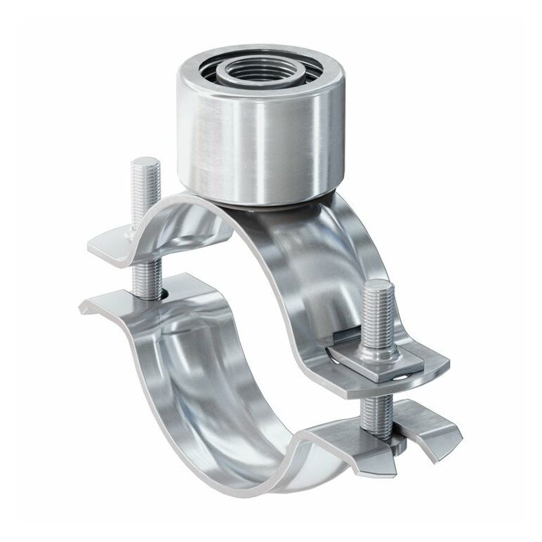 Die fischer Rohrschelle FRSN Triple ist eine zweischraubige Rohrschelle aus galvanisch verzinktem Stahl der Werkstoffgüte DD11 mit Dreifach-Anschlussgewinde M 8/M 10 und ½“ ohne Schalldämmeinlage. Der Schnellverschluss ermöglicht eine einfache und zeitsparende Montage. Die Ausführung mit zwei Schrauben garantiert die optimierte Anpassung an den Rohraußendurchmesser. Zusammen mit dem Dreifach-Anschlussgewinde erhöht dies die Flexibilität. Damit können Rohrleitungen mit einem Außendurchmesser von 15 - 114 mm mit Gewindestange oder Stockschraube wirtschaftlich und sicher in Gebäuden befestigt werden.