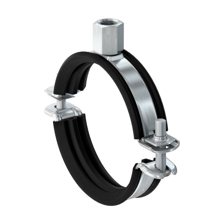 Die fischer Rohrschelle FRS-L Universal ist eine zweischraubige Rohrschelle aus galvanisch verzinktem Stahl der Werkstoffgüte DD11 mit Kombi-Anschlussgewinde M 8/M 10 und einem Schallschutznachweis. Der Schnellverschluss garantiert eine einfache und zeitsparende Montage. Die Ausführung mit zwei Schrauben ermöglicht die optimierte Anpassung an den Rohraußendurchmesser. Zusammen mit dem Kombi-Anschlussgewinde erhöht dies die Flexibilität. Damit können Rohrleitungen mit einem Außendurchmesser von 8 - 119 mm mit Gewindestange oder Stockschraube entsprechend den Brandschutzanforderungen der Feuerwiderstandsklasse R 120 und der MLAR im Innenbereich befestigt werden. Die Rohrschelle entspricht mit einer chlor- und silikonfreien Schalldämmeinlage den Anforderungen der DIN 4109.