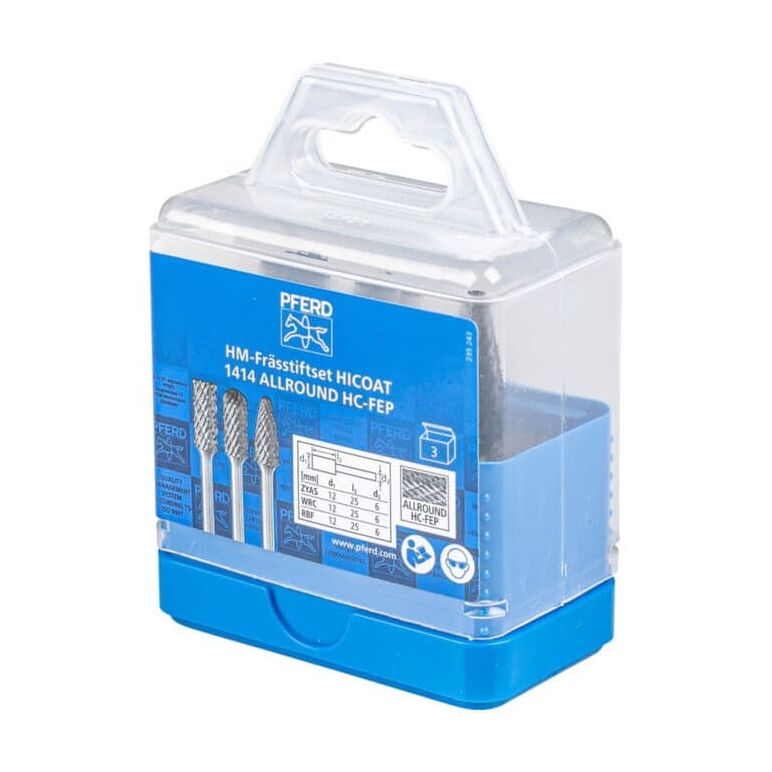 PFERD Hartmetall Hochleistungsfrässtift Set ALLROUND HC-FEP 3-tlg. Schaft-Ø 6 mm universal grob