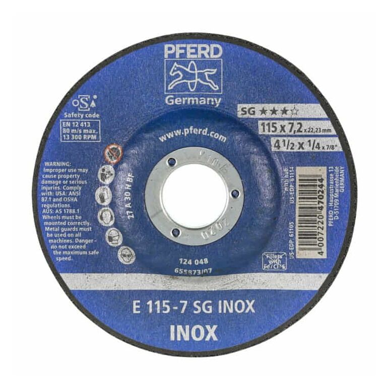 PFERD 62211623 Sg Inox Schruppscheibe gekröpft Durchmesser 115mm Bohrungs-Ø 22.23mm 10St.