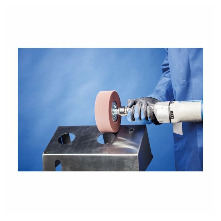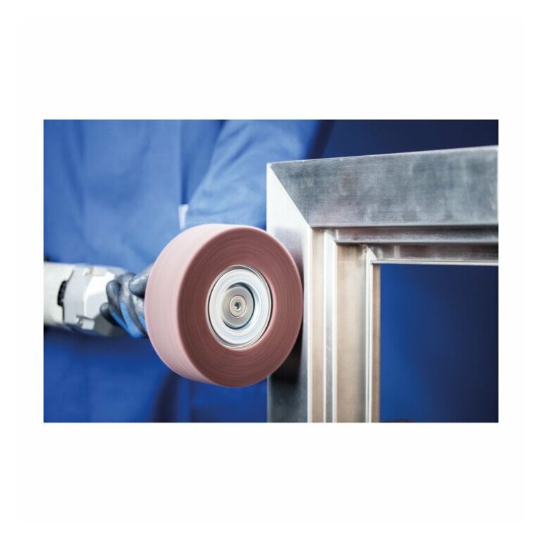 - Das Schleifvlies ist lamellenförmig radial angeordnet