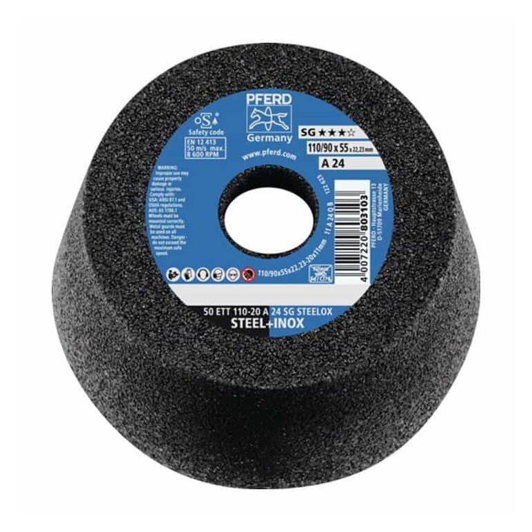 PFERD Schleiftopf ETT SG STEELOX 110/55mm INOX u.STA P36 Bohr.22,23mm